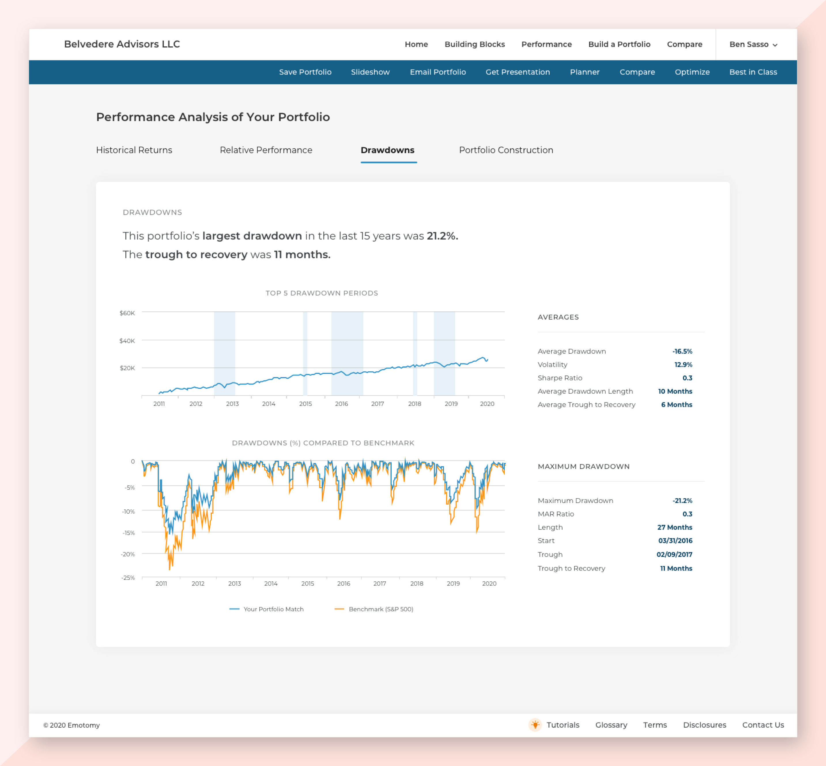 A feature I owned during my tenure with the project was Performance Analysis. The task was to redesign a page full of investment performance charts to be friendly and understandable enough for investors. The original page had 18 charts, which I condensed down to six.