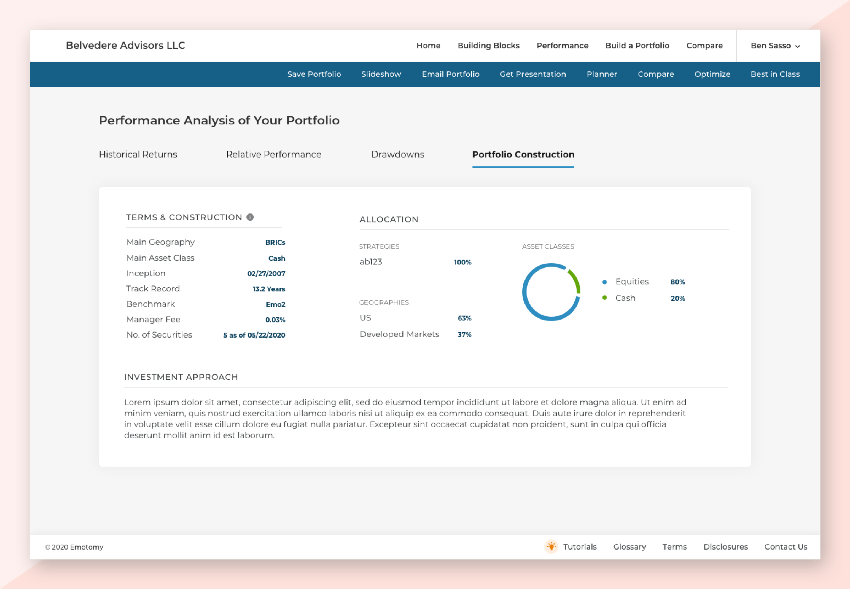 Use design best practices, stakeholder interviews, and end user research to redesign a complicated financial advisor tool for the everyday investor.